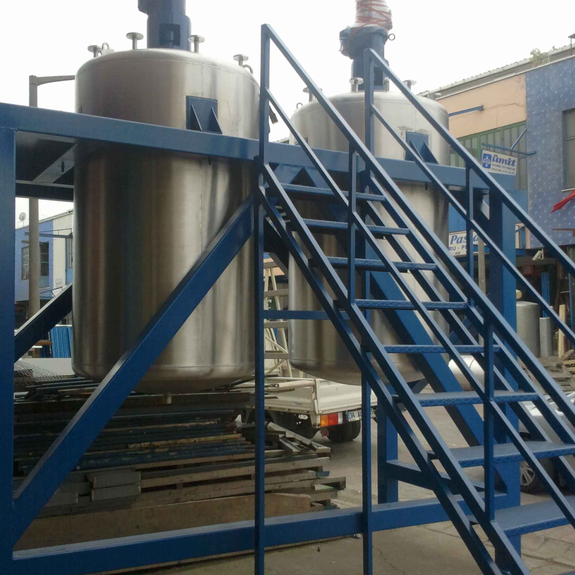 Paslanmaz krom çelik ten imal edilir. Gıda ve kimya sanayinde tercih edilir.(sıvı deterjan üretimi,çikolata üretimi, kozmetik sanayinde,kimyasal ürünlerin yapımında …) üretimi yapılacak hammaddeye göre 304 yada 316 kalite paslanmaz çelik ten ısıtmalı yada ısıtmasız olarak 100 lt den 30000 lt ye kadar imal edilir.